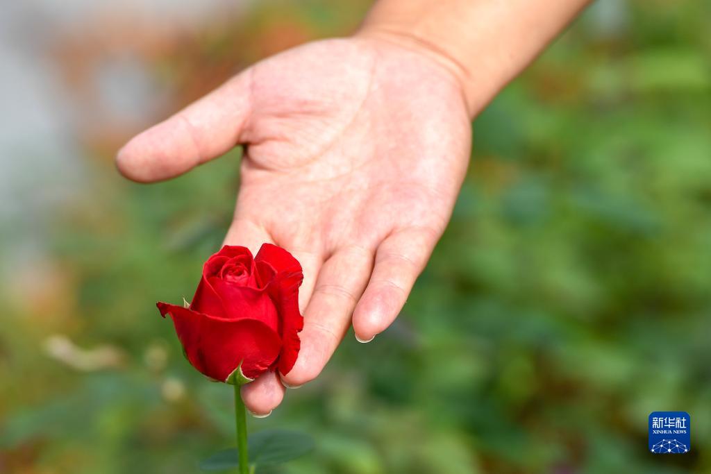 临近七夕,位于吉林省德惠市朱城子镇沿河村的程雪家庭农场玫瑰大棚内一派繁忙景象。负责人杨雪带领村民关注花朵长势,计算着花期,适时进行采摘。