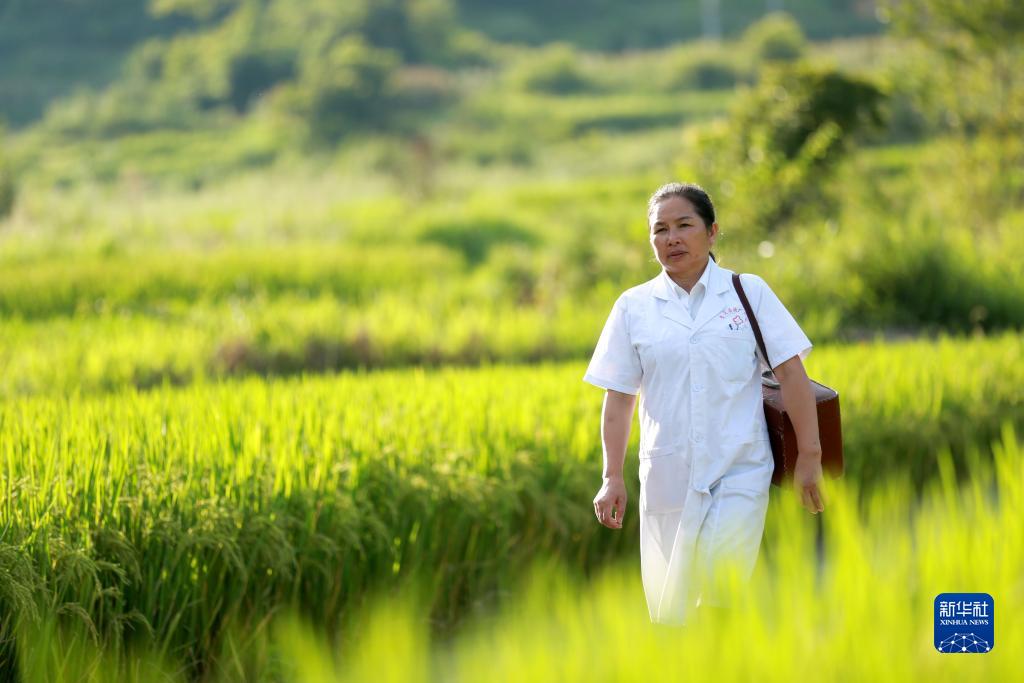 罗海香出诊时经过一片稻田(8月16日摄)。