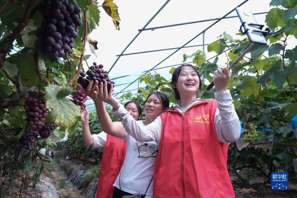 当日,共青团重庆市北碚区委组织参加“返家乡”“三下乡”社会实践活动的大学生走进葡萄园,开展“青耘重庆”直播助农活动,帮助果农拓宽销售渠道。今年暑期,共青团重庆市委联合多家单位启动了“青耘重庆”直播助农活动暨大学生公益助农营销挑战赛,组织多个高校的大学生开展为期两个多月的公益助农销售活动。连日来,大学生们来到田间地头,通过直播带货、创意视频、推文宣传等形式,扩大当地农特产品影响力和知名度。