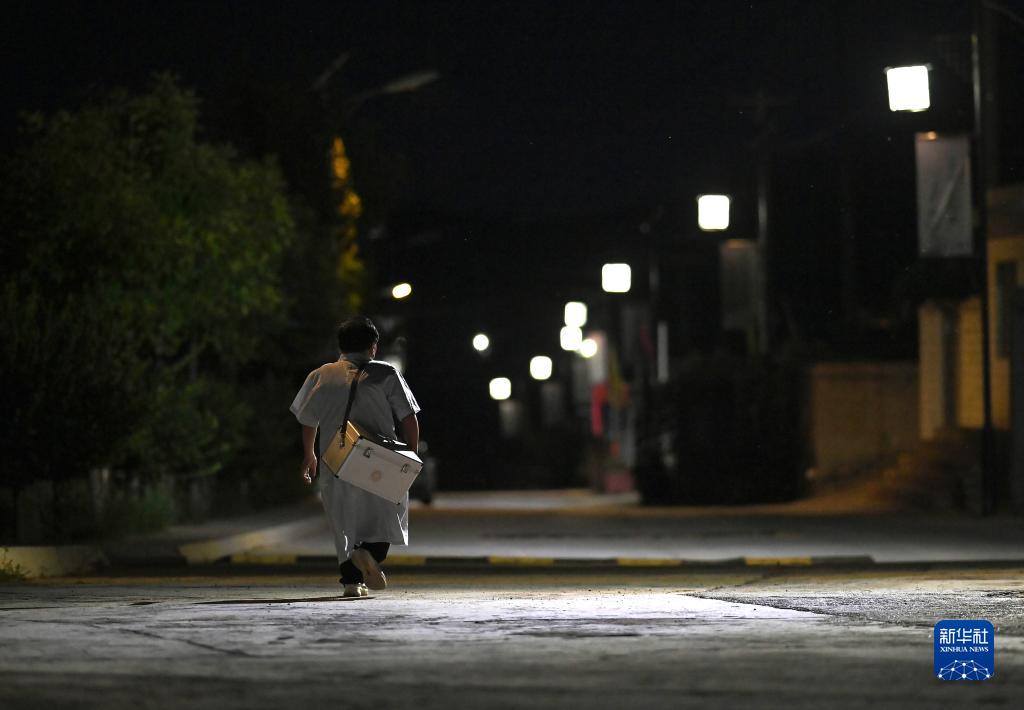 出诊结束后,村医杨兴荣走在回家的路上(8月14日摄)。