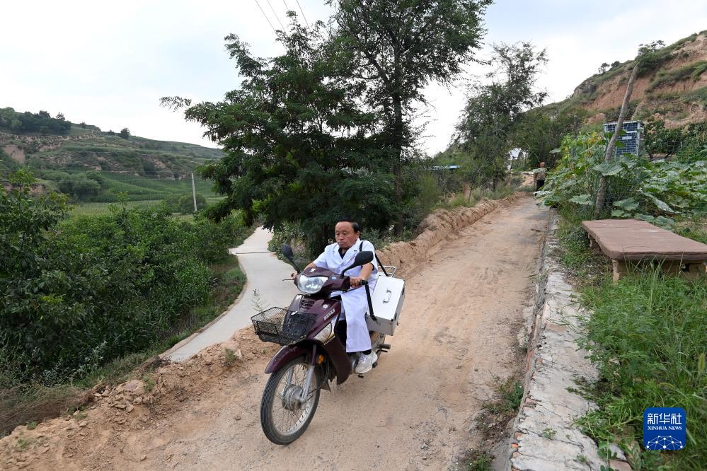 村医杨兴荣骑着摩托车前往王家沟村出诊(8月15日摄)。