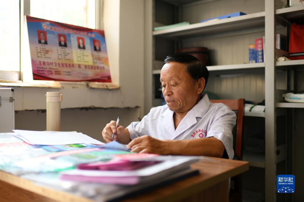 位于吕梁山深处的山西省石楼县龙交乡王家沟村,乡村医生杨兴荣背着药箱一路前行,进村入户为村民送医送药,守护着这里百姓的健康。这里路远且艰、交通不便,500多位村民分散居住在沟壑纵横的大山里,看病难、看病远曾长期困扰着这里的百姓。1976年,17岁的杨兴荣报考了县卫生局主办的医学培训班,1979年学成后回到村里成为一名村医。从这一天起,无论刮风下雨,白天黑夜,只要村民们一个电话,杨兴荣总是第一时间拿上药箱出诊,随叫随到。这些年来,往返奔波在大山之间,杨兴荣不记得穿烂了多少双鞋,摔了多少跤。