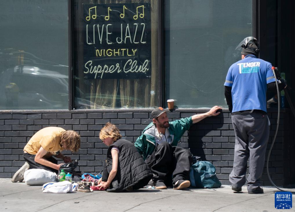 这是8月18日在美国加州旧金山市区的街道上拍摄的无家可归者。