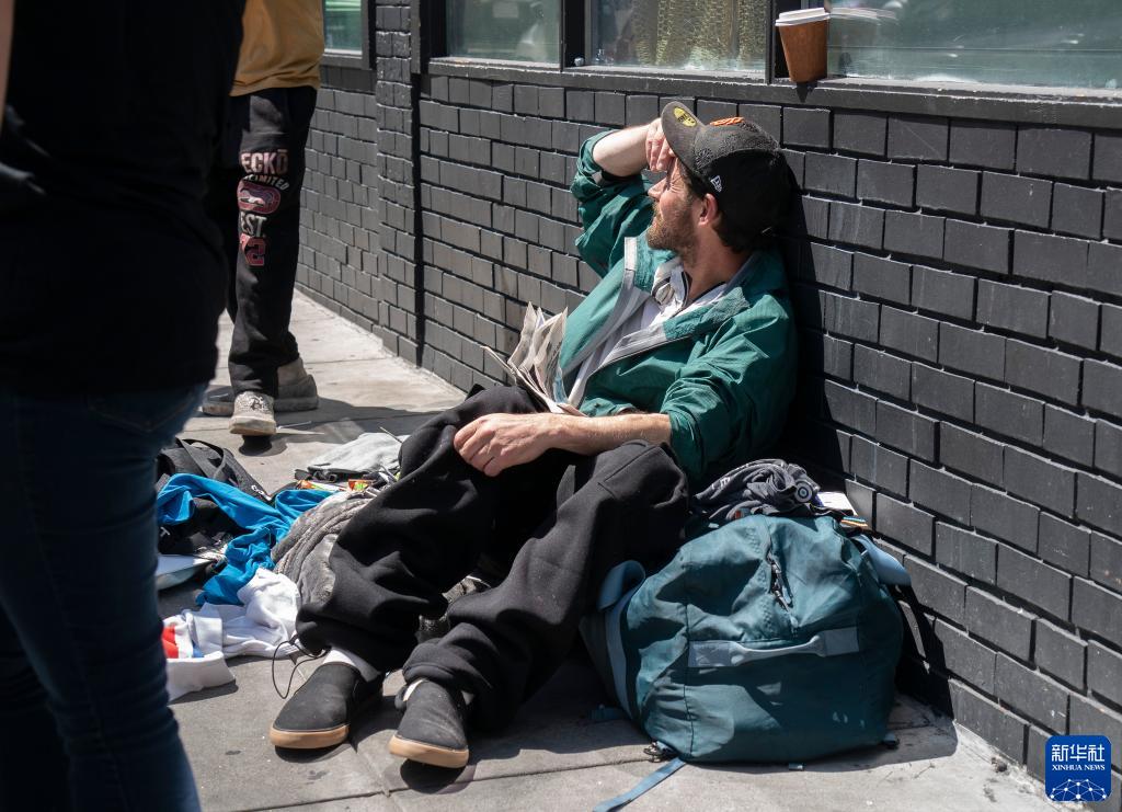 这是8月18日在美国加州旧金山市区的街道上拍摄的无家可归者。