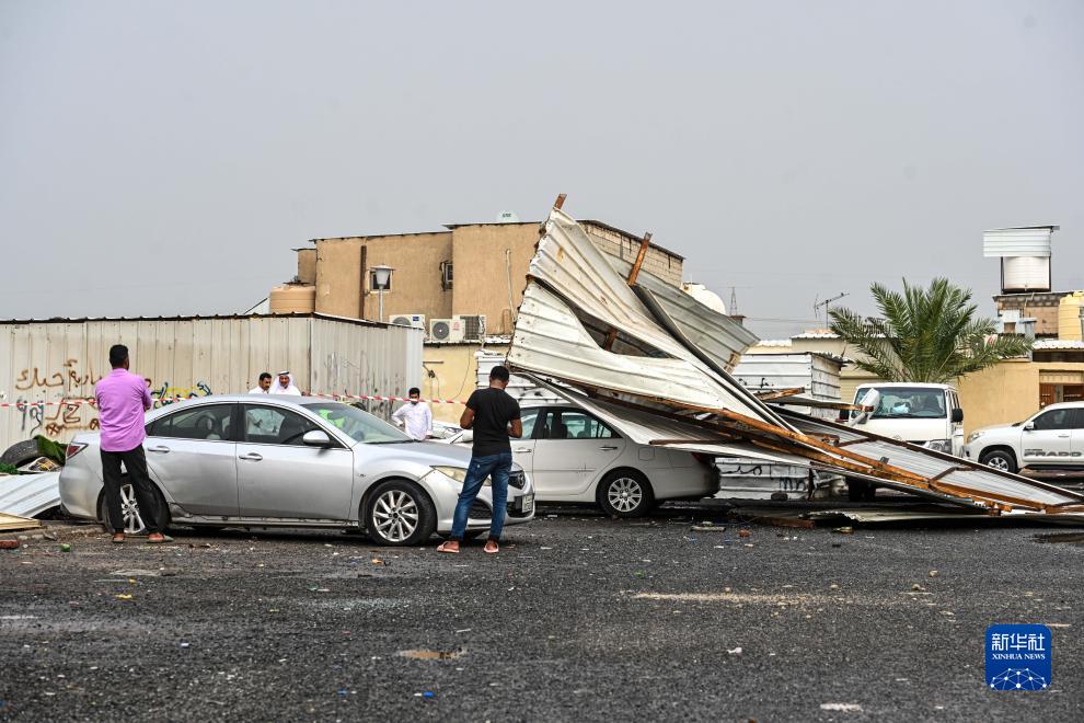 当日,科威特部分地区遭遇极端天气,强风和暴雨给当地交通带来影响,造成财产损失。