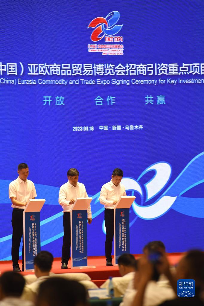 8月18日下午,2023(中国)亚欧商品贸易博览会举行招商引资重点项目签约仪式。本届商博会征集签约项目273个,签约总额4932.12亿元,其中,一期计划投资1470亿元,涉及新能源新材料、有色金属、煤化工、纺织服装、装备制造、商贸物流、文化旅游等多个领域。