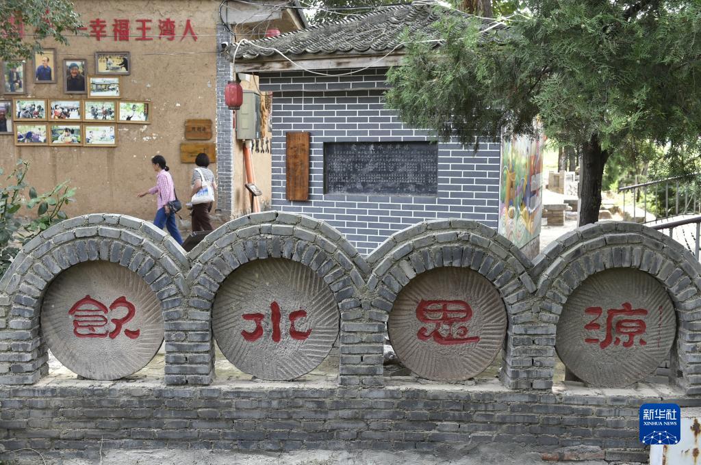 8月18日,游人在汝州市陵头镇王湾民俗村游览。