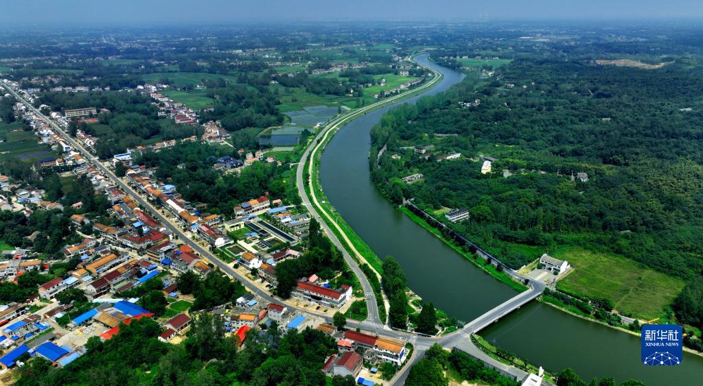 8月18日拍摄的位于安徽省六安市裕安区的淠河总干渠(无人机照片)。