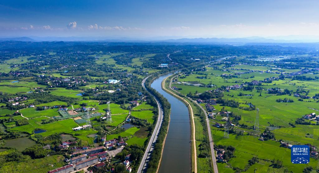8月3日拍摄的位于安徽省六安市裕安区苏埠镇的淠河总干渠(无人机照片)。