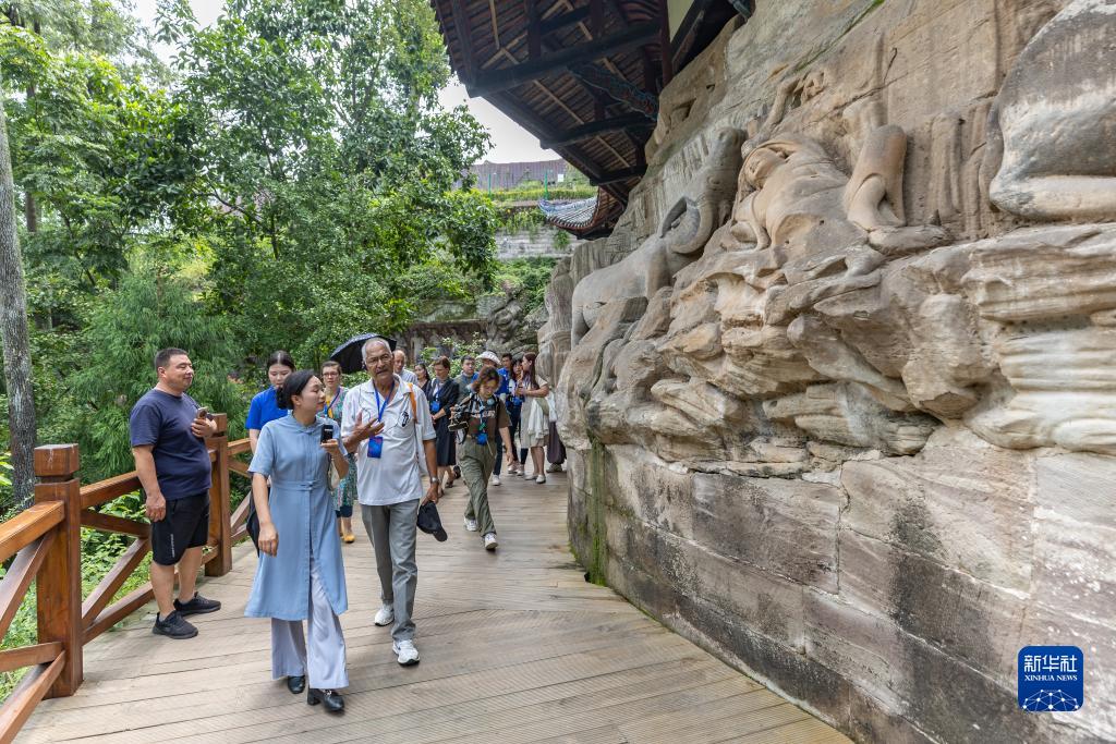8月19日,嘉宾在大足石刻宝顶山景区内参观。