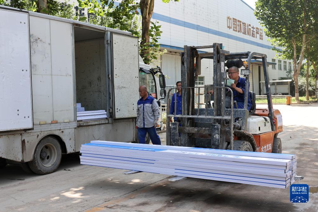 8月19日,在北新集团建材股份有限公司涿州分公司,工人准备将产品装车发货。