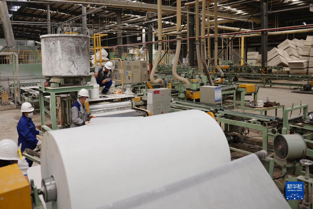 8月19日,工人在北新集团建材股份有限公司涿州分公司矿棉车间工作。