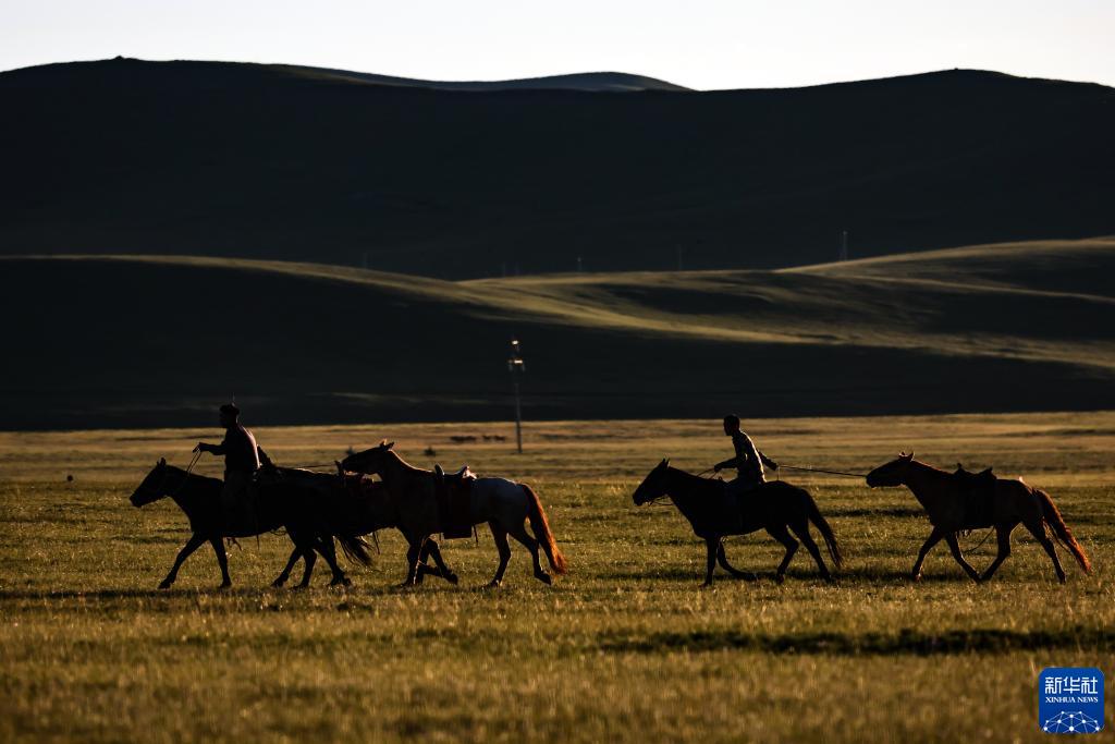 散去了白天的喧嚣,距离蒙古国首都乌兰巴托40多公里的泰吉山谷又恢复了往日的宁静,夕阳给山谷和牧场披上了金色的盛装。参加2023年度“游牧民族”世界文化节的人们,有的选择在此宿营,等待次日继续参加文化节的各种活动,有的选择驾车返回乌兰巴托或附近的牧点。牧人们将放牧的马匹收拢并带回家中,不知疲倦的孩子们继续在夕阳中嬉戏打闹。