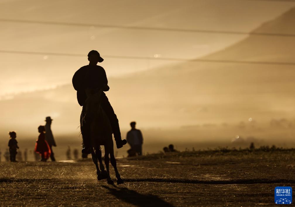 散去了白天的喧嚣,距离蒙古国首都乌兰巴托40多公里的泰吉山谷又恢复了往日的宁静,夕阳给山谷和牧场披上了金色的盛装。参加2023年度“游牧民族”世界文化节的人们,有的选择在此宿营,等待次日继续参加文化节的各种活动,有的选择驾车返回乌兰巴托或附近的牧点。牧人们将放牧的马匹收拢并带回家中,不知疲倦的孩子们继续在夕阳中嬉戏打闹。
