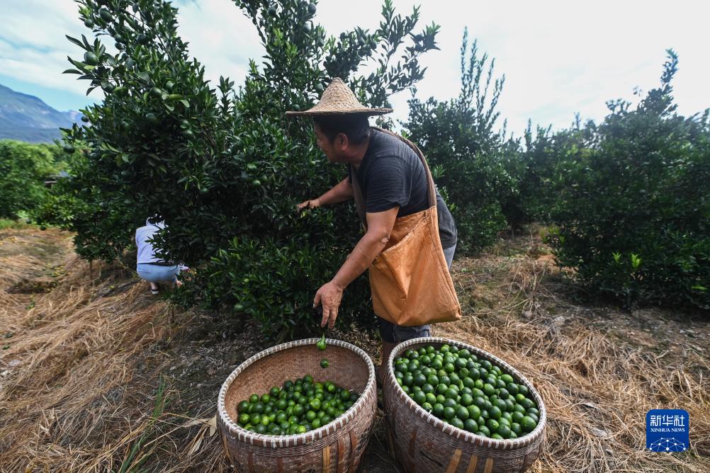 8月20日,种植户在浙江省建德市三都镇松口村的橘园内采摘小青柑。