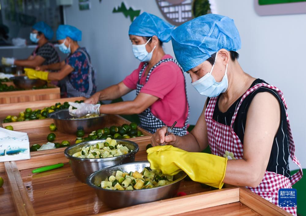 8月20日,在浙江省建德市三都镇松口村的小青柑共富工坊,工人忙着开果、挖果。