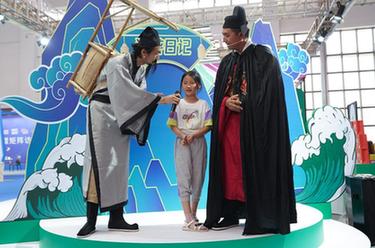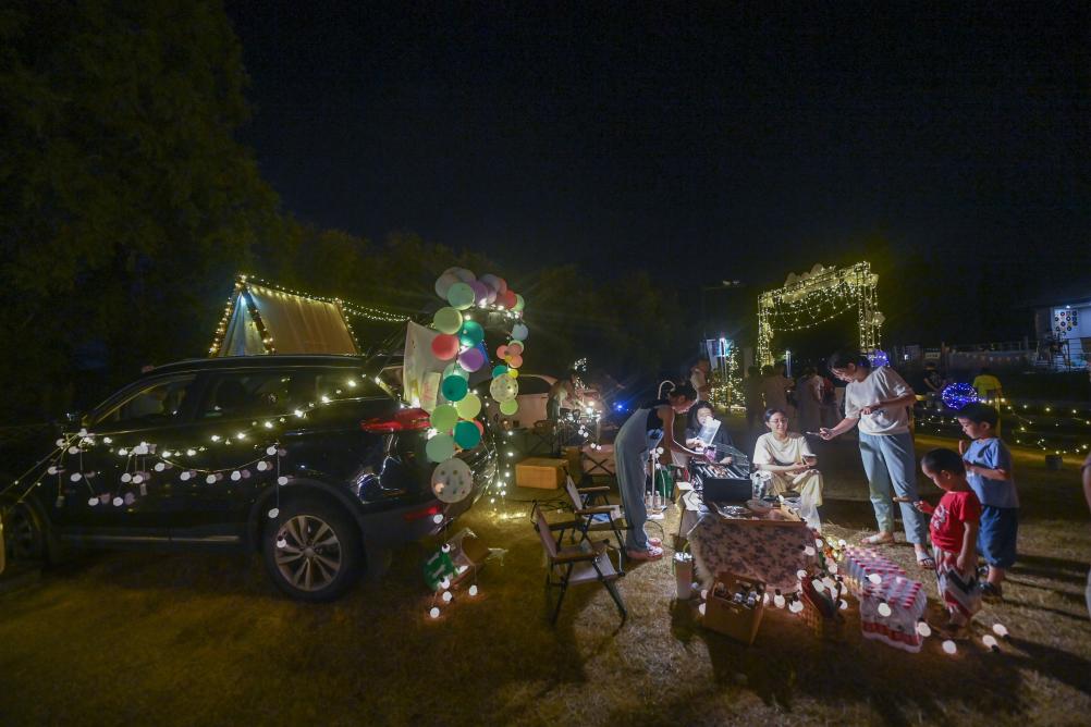 8月20日,同学们在FIS竞速赛车赛道边观看借助小气压瓶助力起跑的赛车。