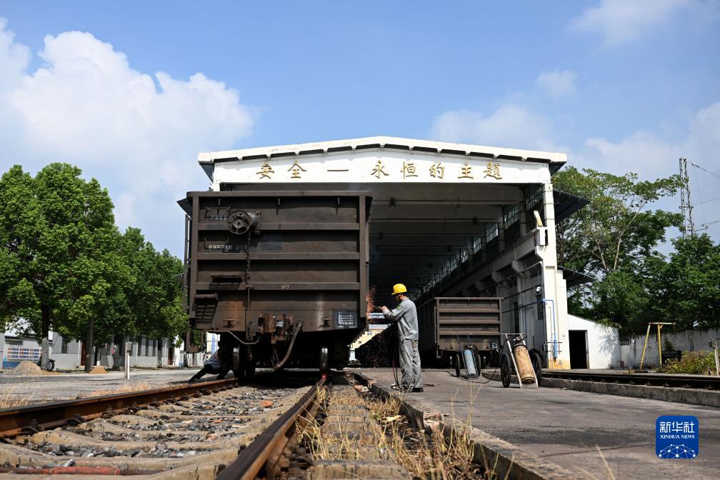 正值暑运,中国铁路上海局集团有限公司杭州北车辆段合肥运用车间临修班组的熔接工们坚守岗位,忙着对列车车体的破损及变形部位进行焊接维修,保障列车的安全开行。