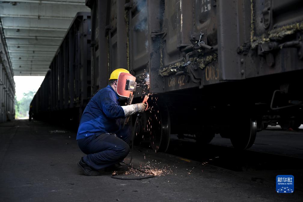 8月20日,中国铁路上海局集团有限公司杭州北车辆段合肥运用车间临修班组熔接工高杰对列车进行维修。