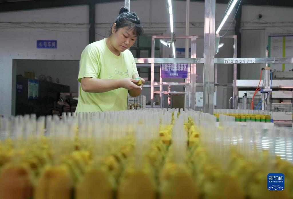 8月20日,工人在唐山市丰南区钱营镇李毫子庄村一家冶金传感器企业的生产车间工作。