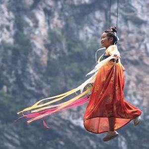 8月20日,游客在湖北省恩施州建始县地心谷景区游玩(无人机照片)。