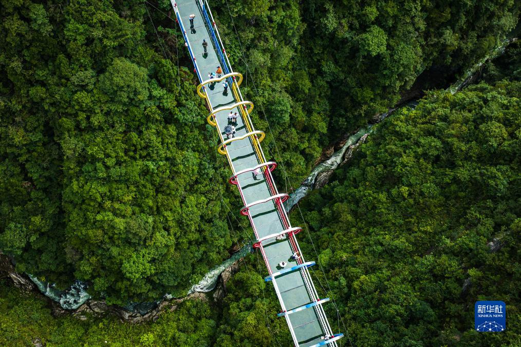 8月20日,游客在湖北省恩施州建始县地心谷景区游玩(无人机照片)。