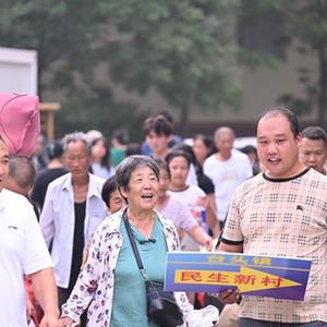 8月20日,在天津市静海区台头镇,返村村民在街上相互问候。
