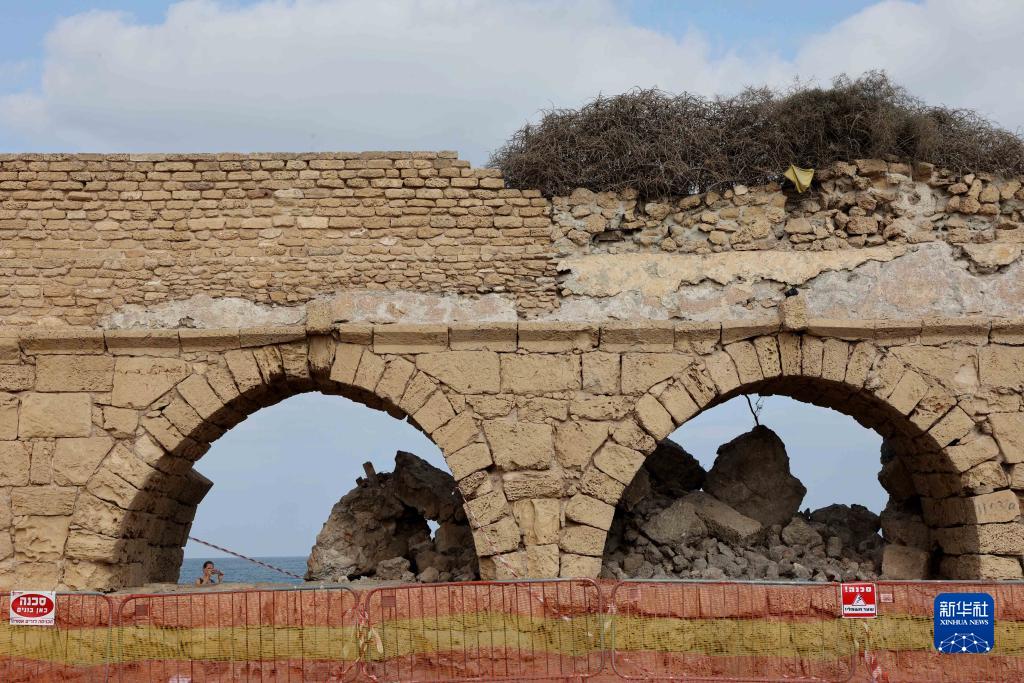 这是8月20日在以色列城市凯撒里亚拍摄的古罗马渡槽坍塌现场。