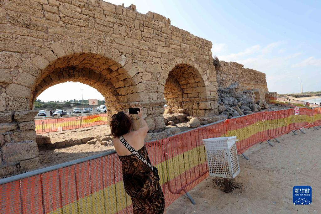 这是8月20日在以色列城市凯撒里亚拍摄的古罗马渡槽坍塌现场。