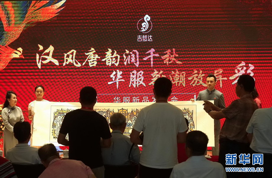 8月20日,“汉风唐韵润千秋 华服新潮放异彩”华服新品发布会在京举行,由北京吉梦达文化创新设计的20款华服精彩亮相。新品华服表现岀中华民族端庄、高雅、大气、沉稳、向上的时代精神。新华网 李清 摄