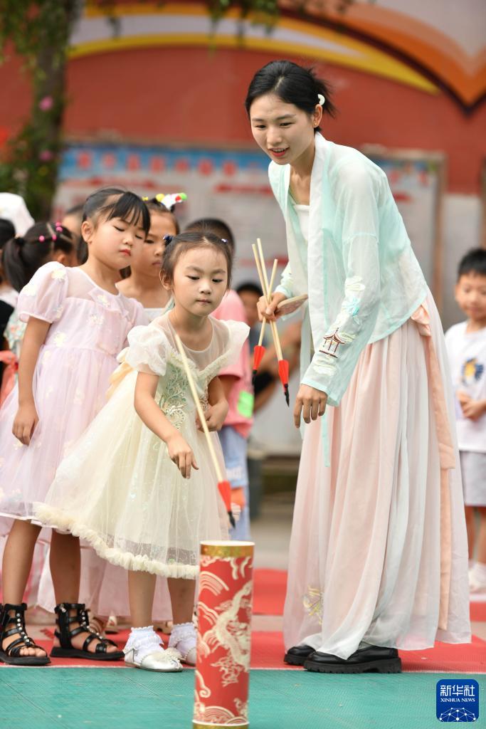 8月21日,贵州省黔东南苗族侗族自治州黄平县新州镇第二小学的师生一起参加投壶趣味活动。