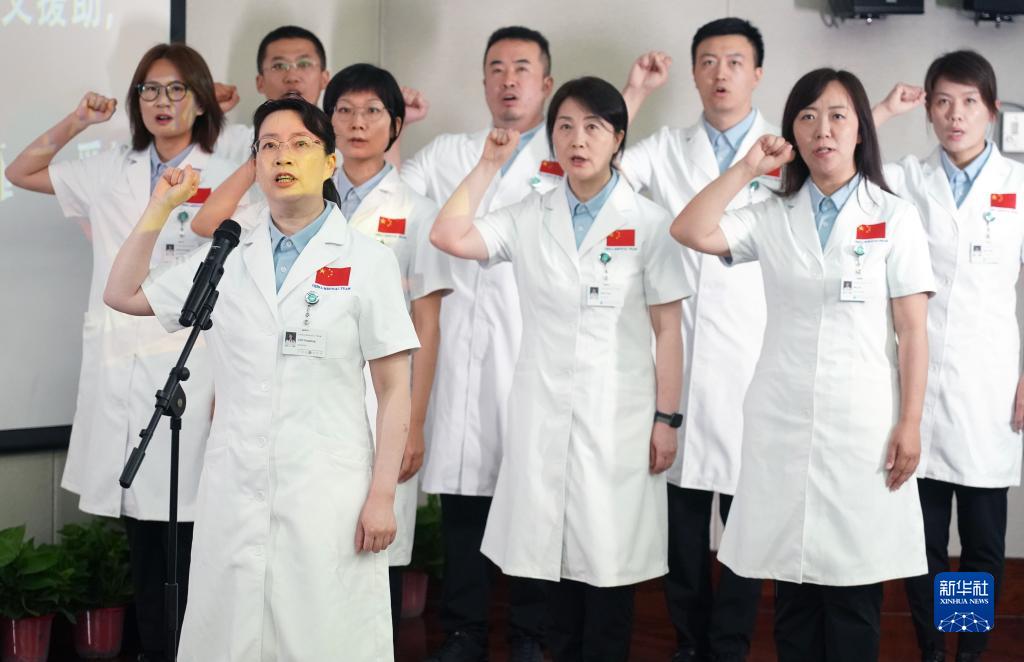 8月21日,北京同仁医院第2批援瓦努阿图中国医疗队队员在活动中宣誓。