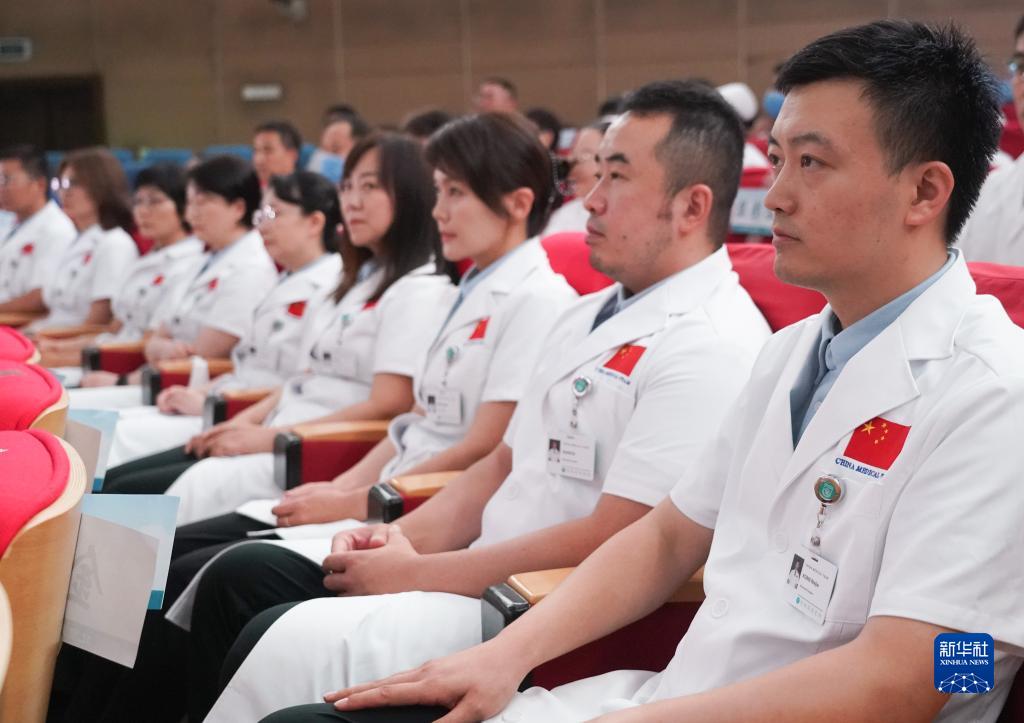 8月21日,北京同仁医院第2批援瓦努阿图中国医疗队队员出席出征授旗活动。