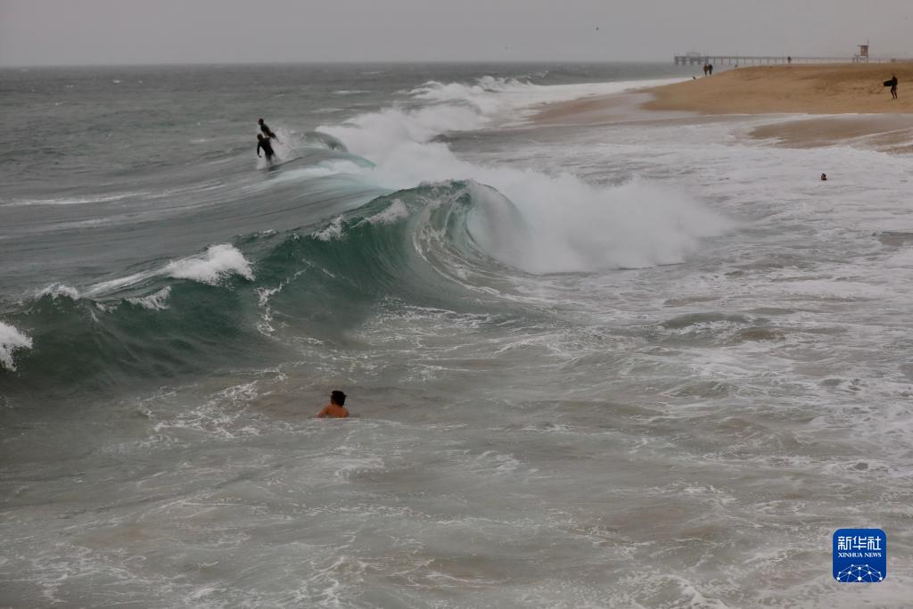 这是8月20日在美国加利福尼亚州纽波特比奇拍摄的海浪。