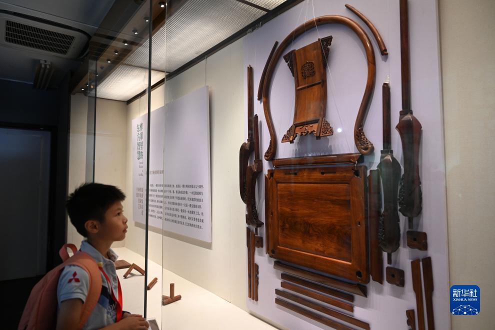 8月21日,观众参观展出的京作皇宫椅部件。