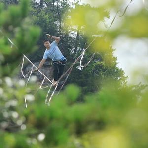 8月21日,2023年张家界黄石寨高空扁带赛在湖南张家界国家森林公园黄石寨举行。来自中国、法国、西班牙等国家和地区的选手在峰林之间竞技。