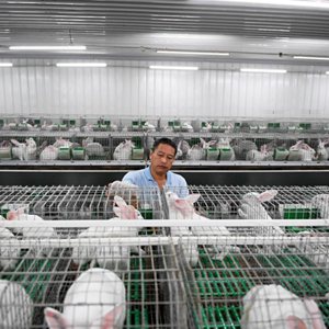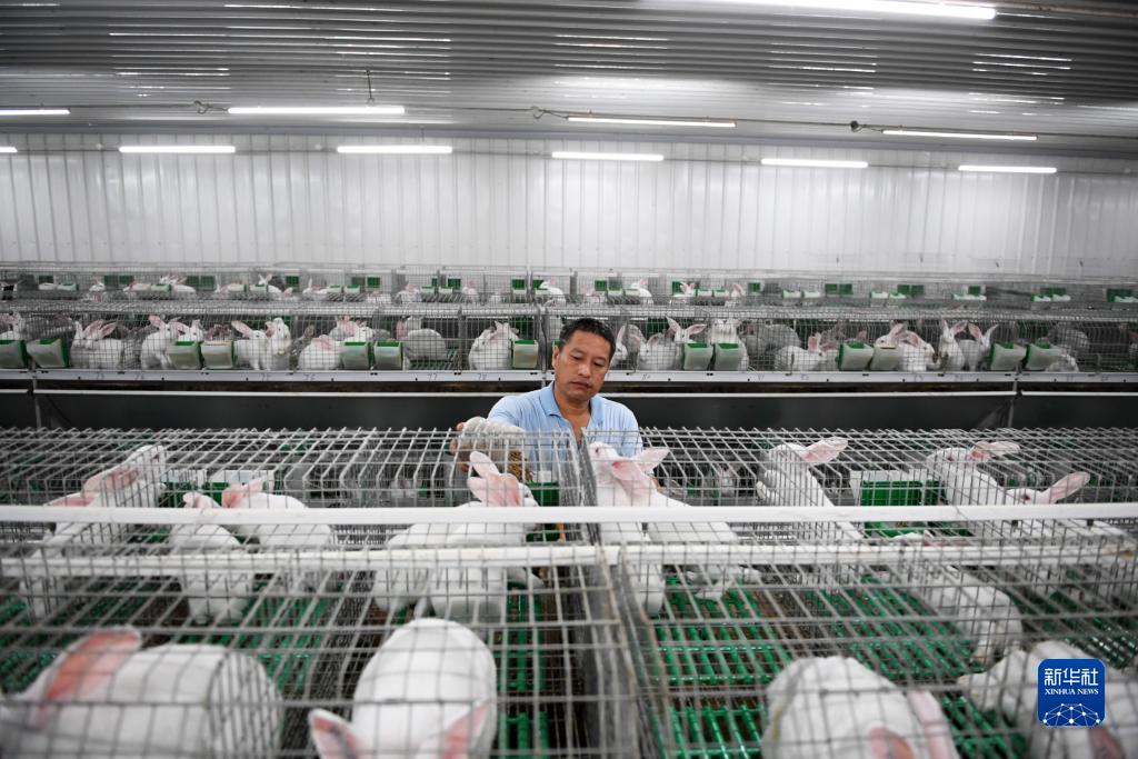 近年来,湖南省永州市宁远县积极发展兔产业,推行“龙头企业+合作社+基地+农户”模式,培育了一批养兔专业大户、养兔基地村,并深化兔产品加工,延展相关产业链。新华社记者 陈振海 摄
