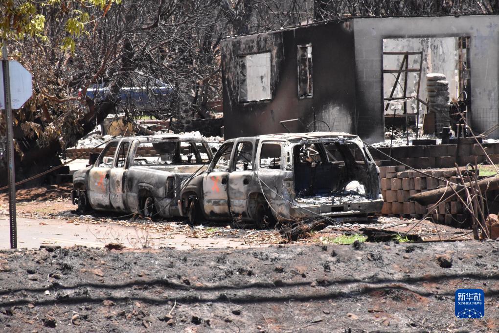 这是8月20日在美国夏威夷毛伊岛拉海纳镇拍摄的野火过后景象。