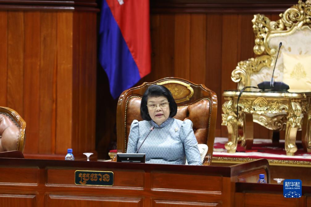8月22日,柬埔寨新一届国会主席昆索达莉在首都金边的国会会议上发言。
