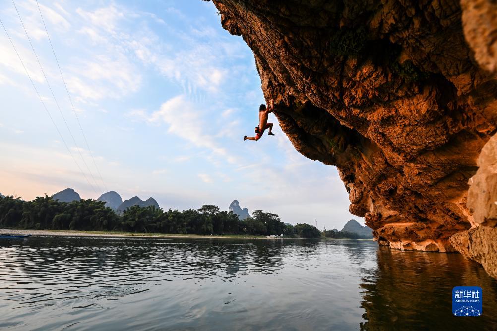 阿邦介绍说,攀岩是阳朔开发最久的户外运动项目之一,已有30多年历史。阳朔所有的岩场最远的30分钟车程,大部分在15至20分钟以内就可以抵达岩壁,十分便利。而阳朔在开发建设自然岩壁攀岩场所时,坚持守护绿水青山、打造生态屏障,使山水美景成为吸引各地岩友前来“打卡”的王牌。