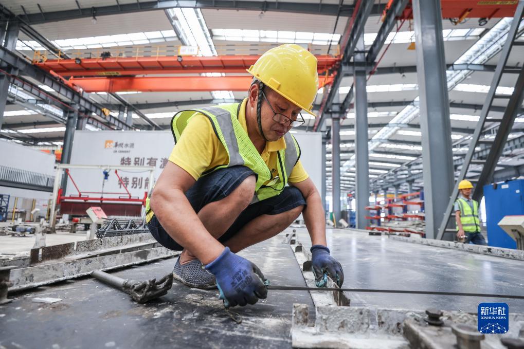 8月22日,海南定安县新竹镇华润智筑科技(定安)装配式示范产业基地工人在布置模具。