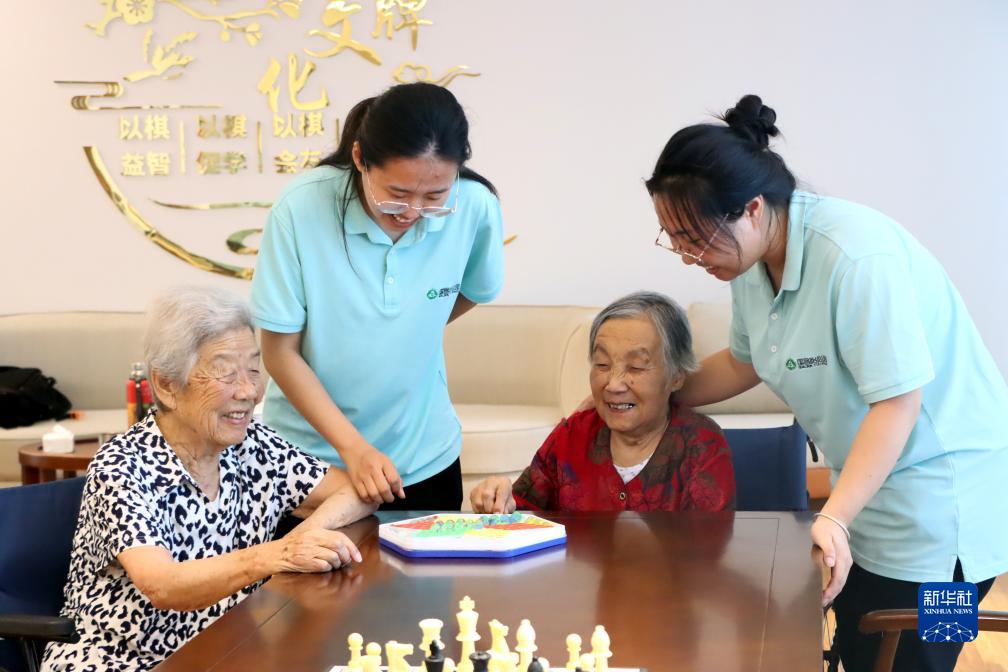 8月21日,老人在位于山东省滨州市沾化区大高镇的国昌怡心园内下棋。