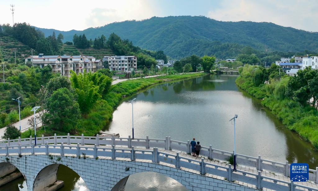 8月17日,郑其辉陪伴妻子散步(无人机照片)。