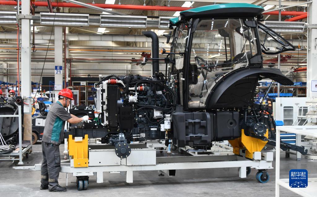 8月22日,在位于山东省潍坊市坊子区的潍柴雷沃智慧农业科技股份有限公司,工人在车间组装生产农机设备。