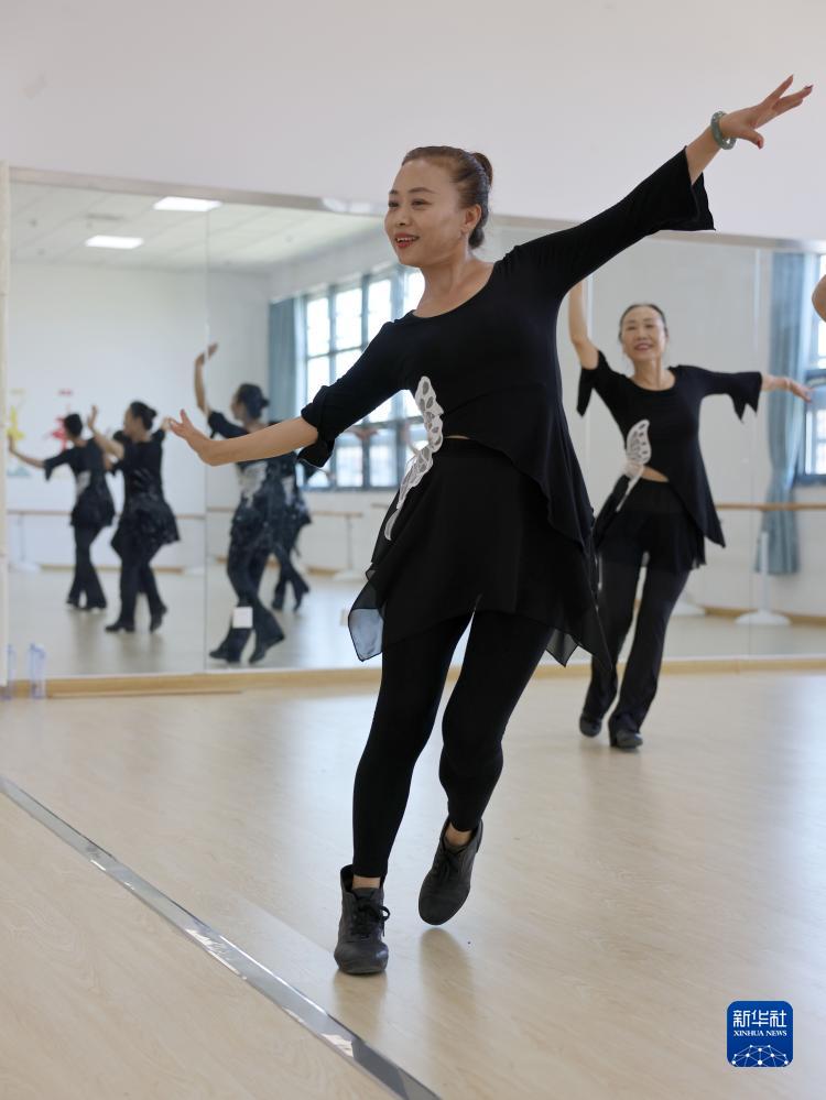8月23日,在河北省沧州市青县市民文化活动中心舞蹈教室,舞蹈爱好者在老师的带领下练习舞蹈。