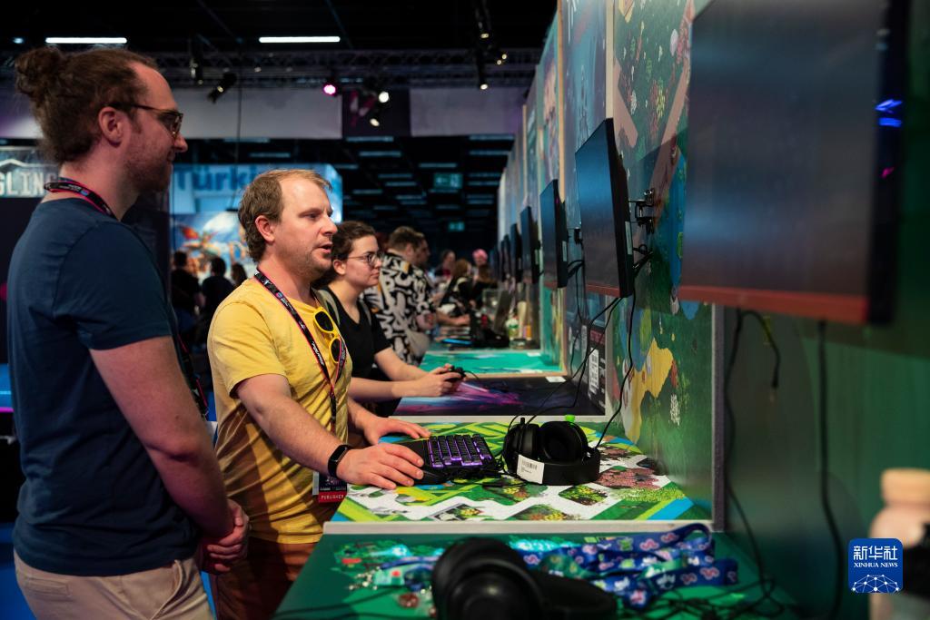 8月23日,人们在德国科隆举办的科隆国际游戏展上试玩游戏。新华社记者 张帆 摄