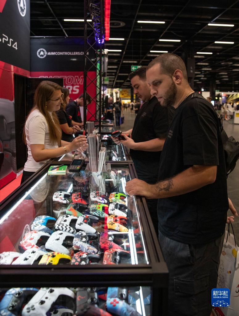 8月23日,人们在德国科隆举办的科隆国际游戏展上挑选商品。新华社记者 张帆 摄