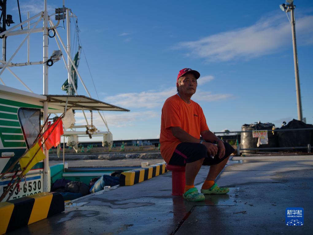 8月23日,打渔归来的小野春雄坐在日本福岛县新地町的渔港。