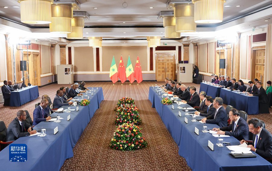当地时间8月23日下午,国家主席习近平在约翰内斯堡出席金砖国家领导人会晤期间会见塞内加尔总统萨勒。新华社记者 丁海涛 摄