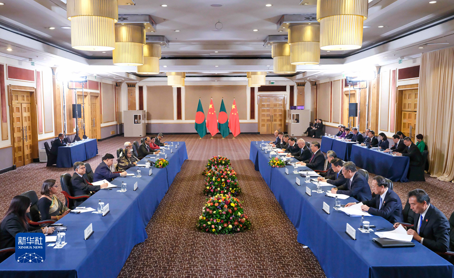 当地时间8月23日下午,国家主席习近平在约翰内斯堡出席金砖国家领导人会晤期间会见孟加拉国总理哈西娜。